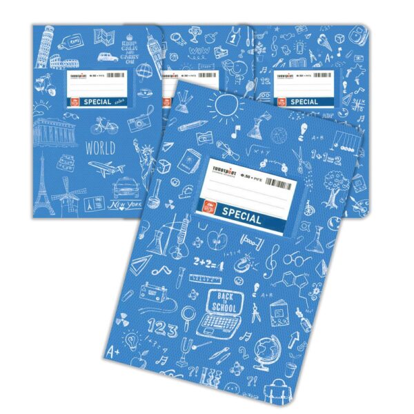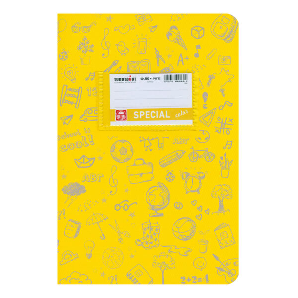 Κλασικό Special Τετράδιο 50 φύλλων, διάστασης B5 (17×25) με χρωματιστό ανάγλυφο πλαστικό εξώφυλλο. Τα φύλλα είναι από εξαιρετικής ποιότητας χαρτί 70γρ. και η γραμμογράφηση είναι ριγέ με σωστές αποστάσεις. Έχει στρογγυλεμένες γωνίες και προεκτυπωμένη ετικέτα 2 όψεων σε ματ χαρτί η οποία βγαίνει εύκολα χάρη στην εγκοπή. Διατίθεται σε 13 χρώματα (μαύρο, κόκκινο, πράσινο, μωβ, κίτρινο, πορτοκαλί, λαχανί, φούξια, γαλάζιο, γκρι, βεραμάν, μπορντώ, λευκό). Το απαραίτητο κλασικό χρωματιστό τετράδιο για του δημιουργούς του αύριο!